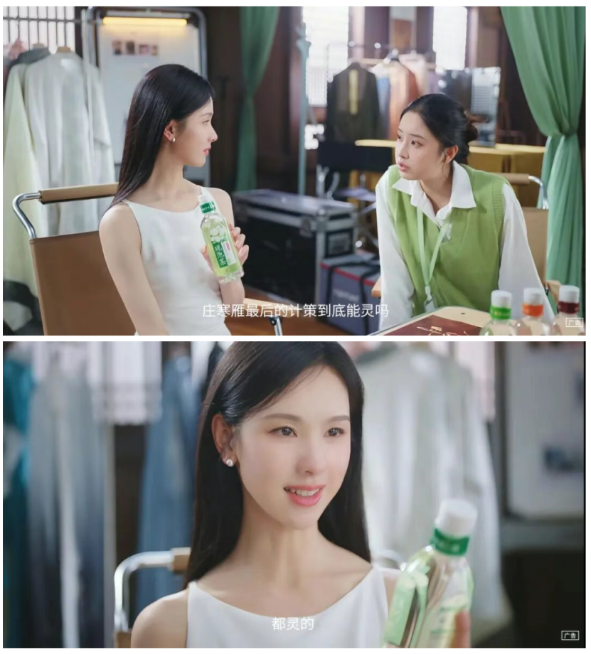 在《雁回时》热播期间,伊刻活泉迅速官宣陈都灵为灵感代言人,围绕“都0”做文章。产品坚持“0糖0卡0碳酸氢钠”配方,还原现泡茶饮自然风味,“都0”强化产品纯粹、新鲜与健康卖点。陈都灵名字“都灵”谐音“都0”,使产品与代言人契合度更深。剧情中庄寒雁坚守本心与产品追求“新鲜本真”不谋而合,品牌在中插广告融入营销梗,回应网友期待,突出产品卖点。
