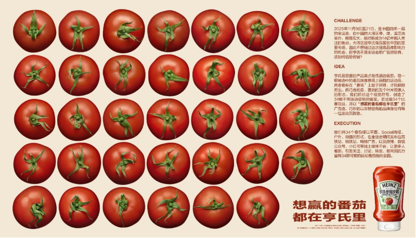亨氏的创意营销之旅,在全运会期间就已初露锋芒。“运动番茄”地铁广告宛如一颗投入平静湖面的石子,激起了层层涟漪。
